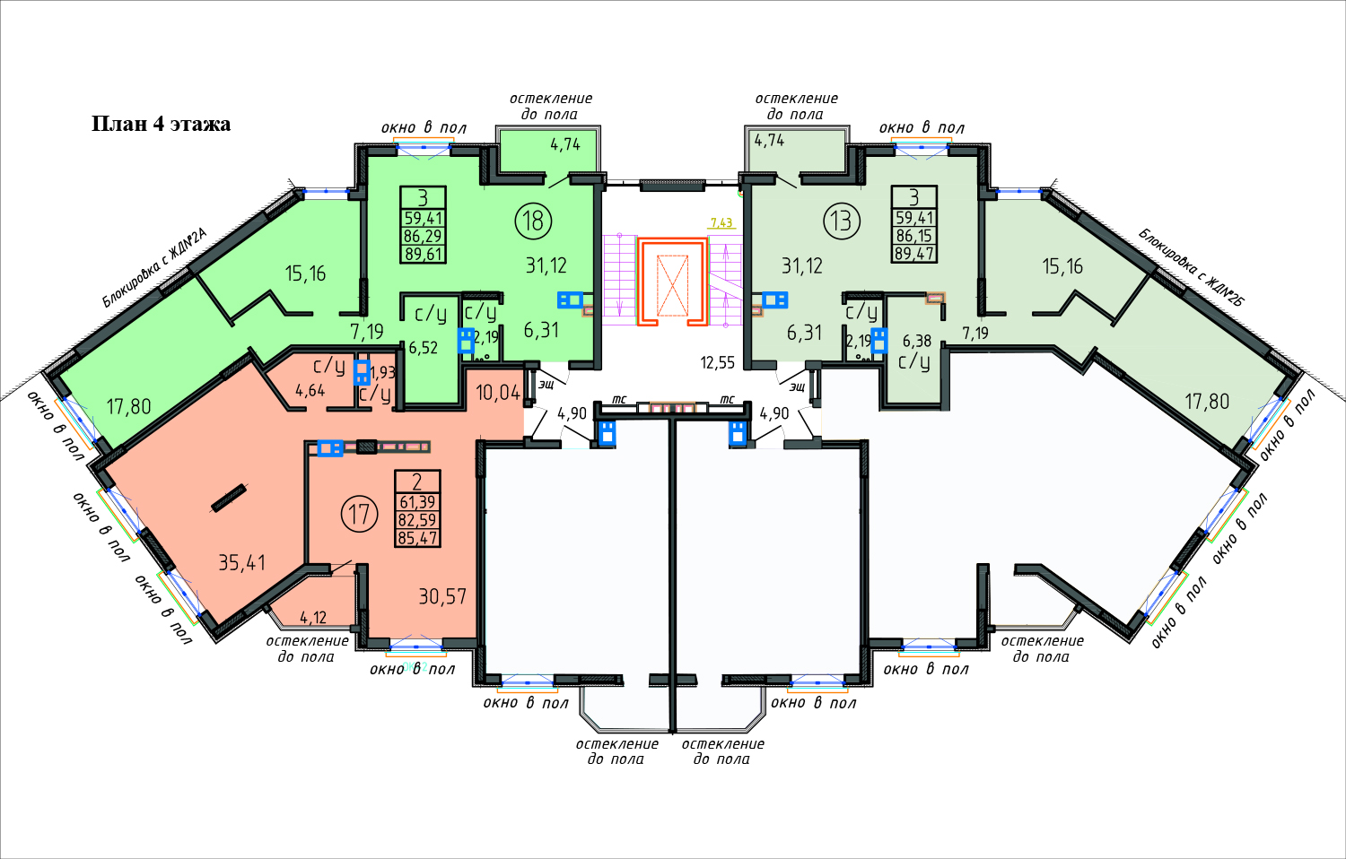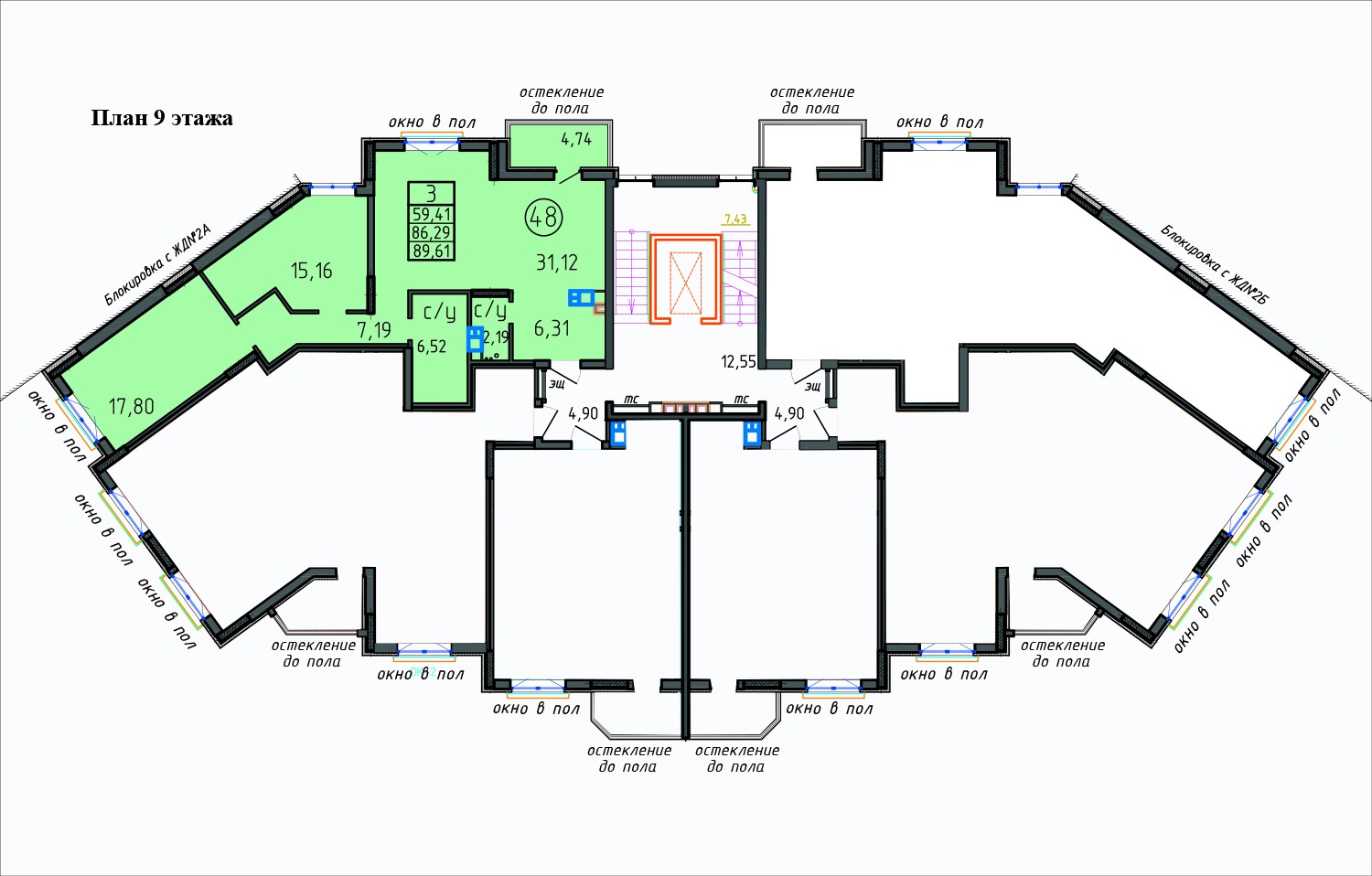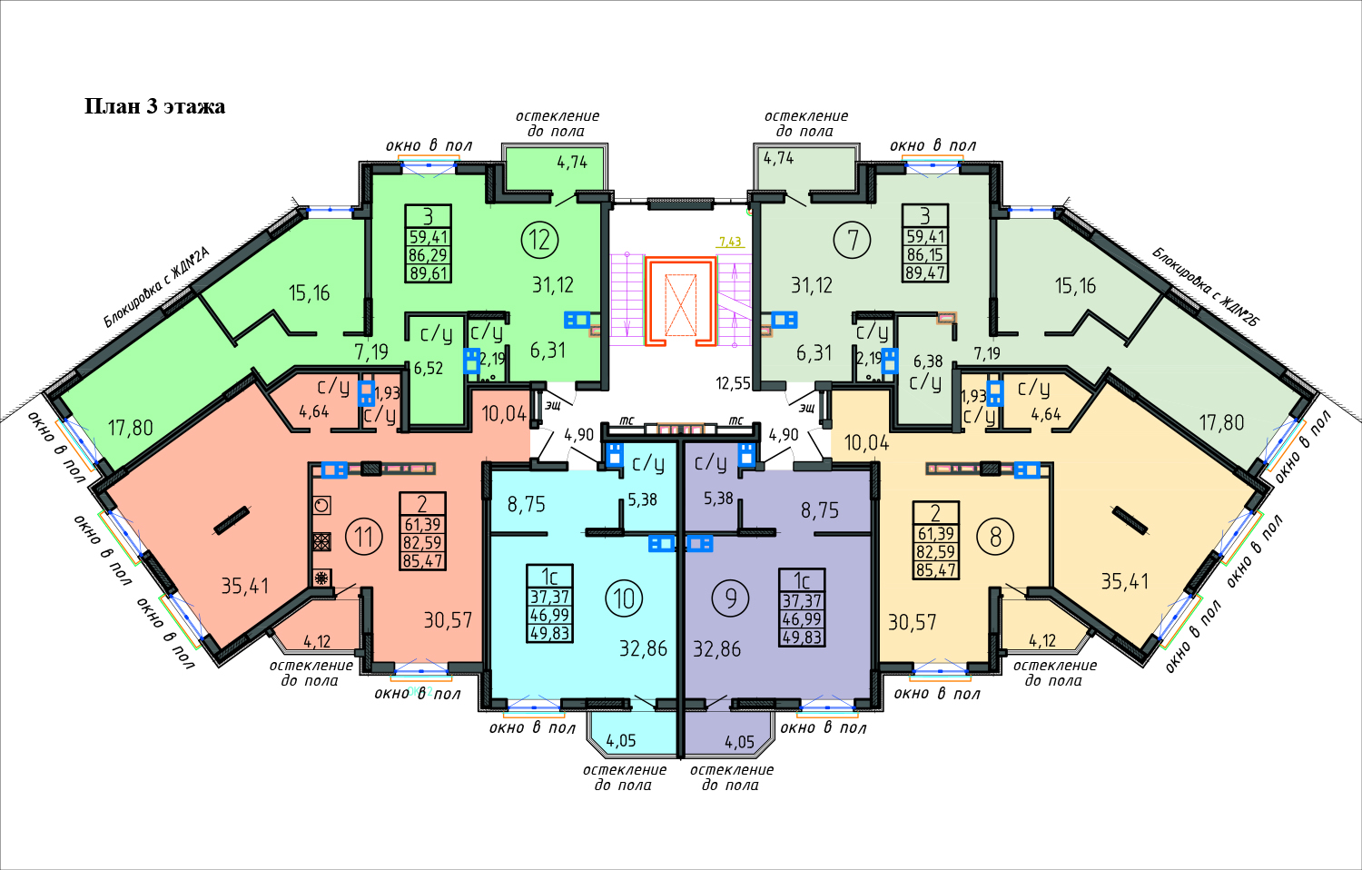 3-х (89,43 - 89,61 м2) комн. кв. |