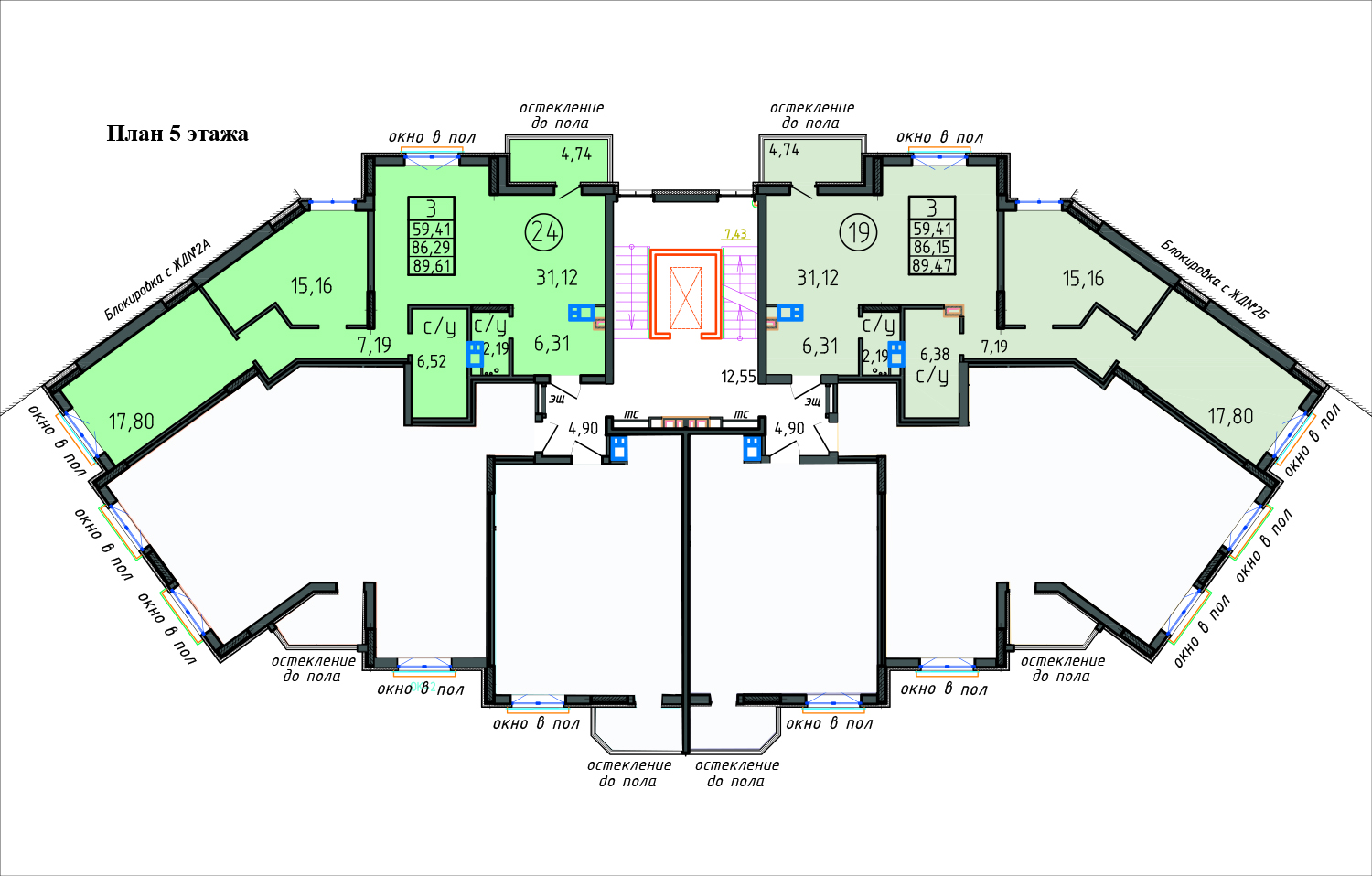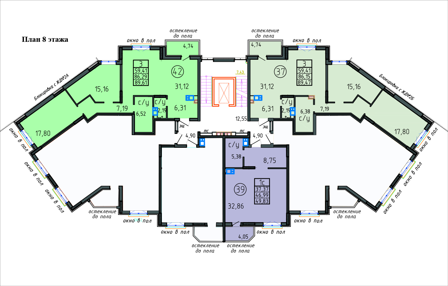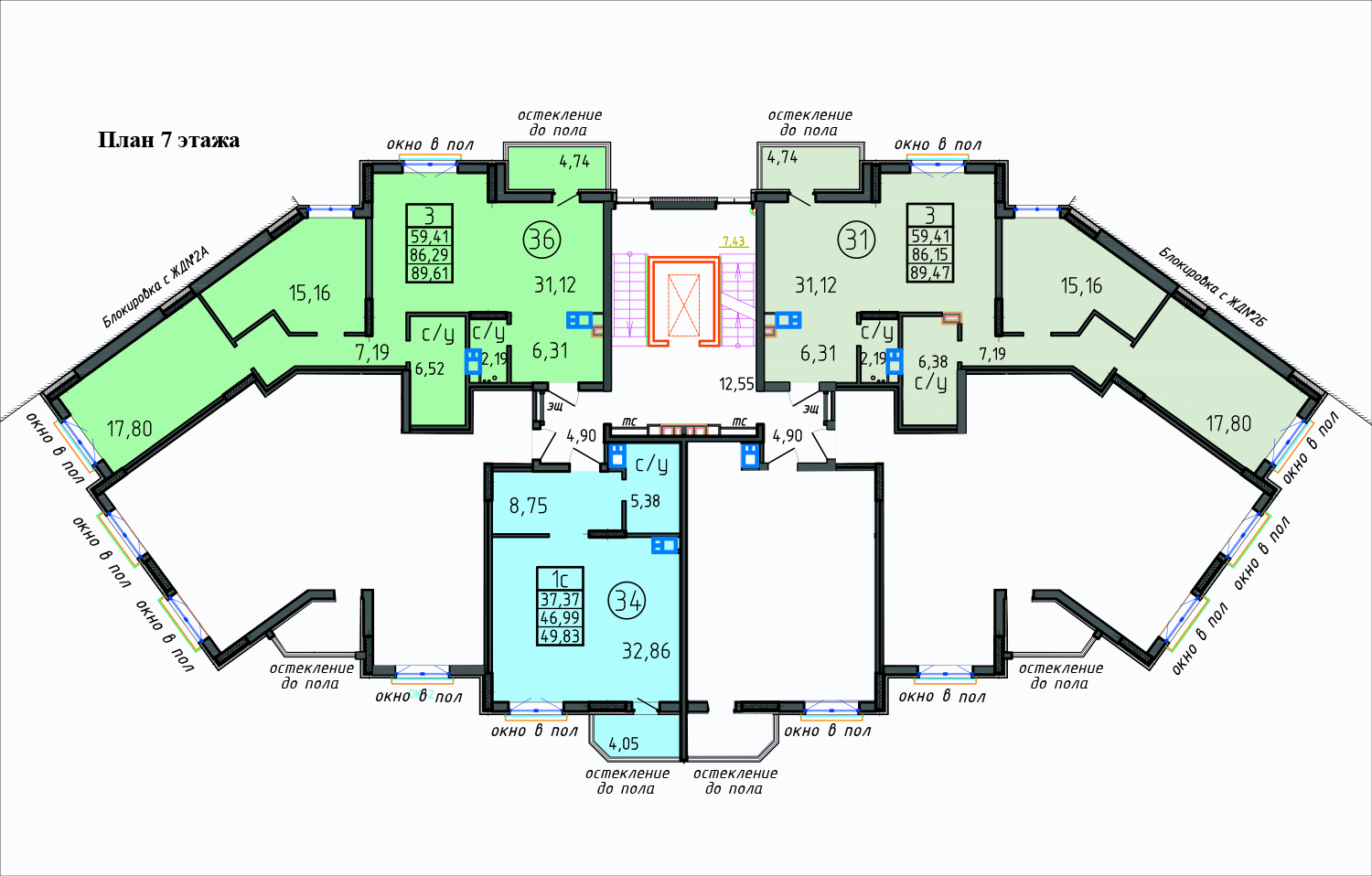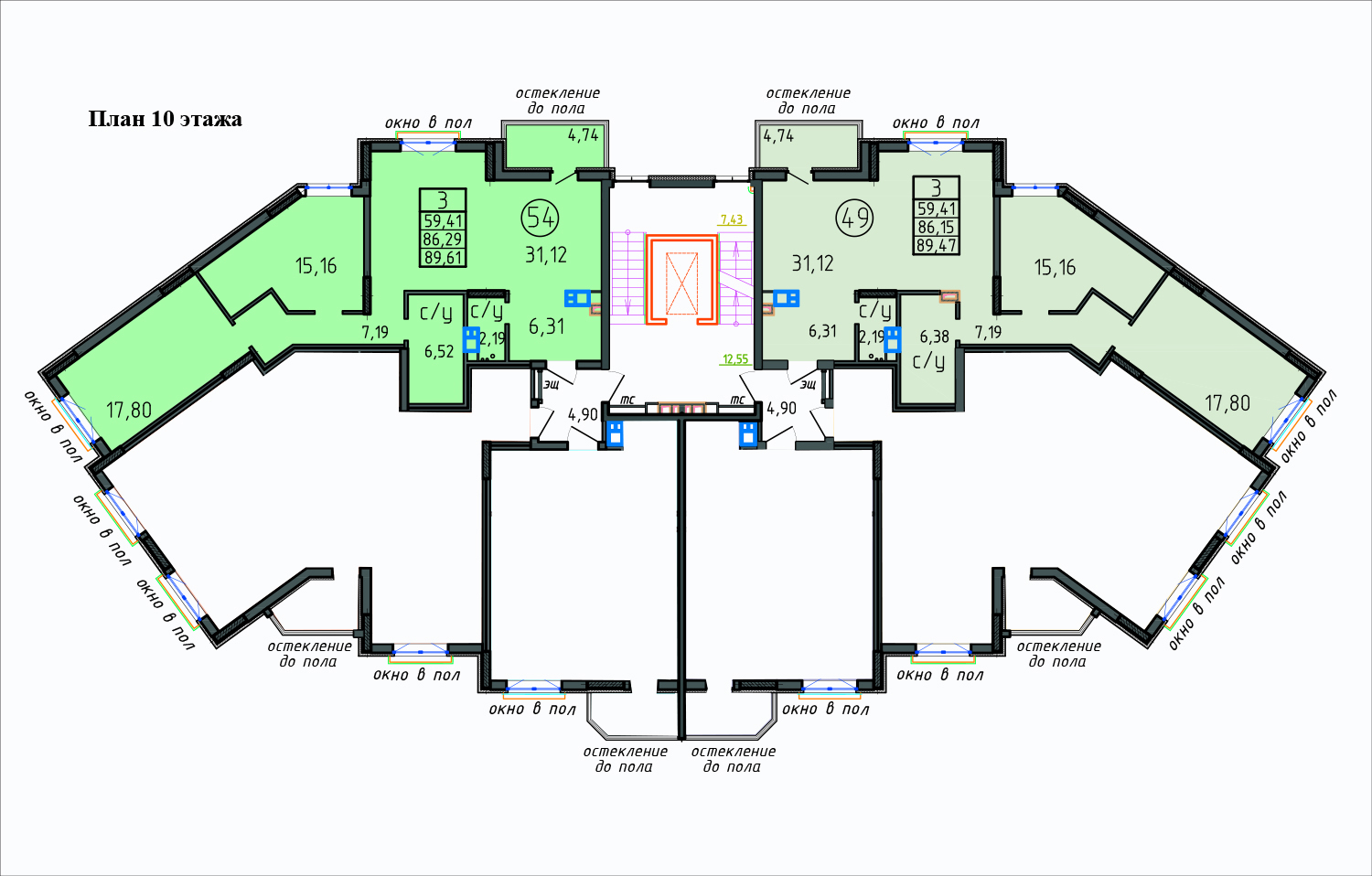 3-х (89,43 - 89,61 м2) комн. кв. |