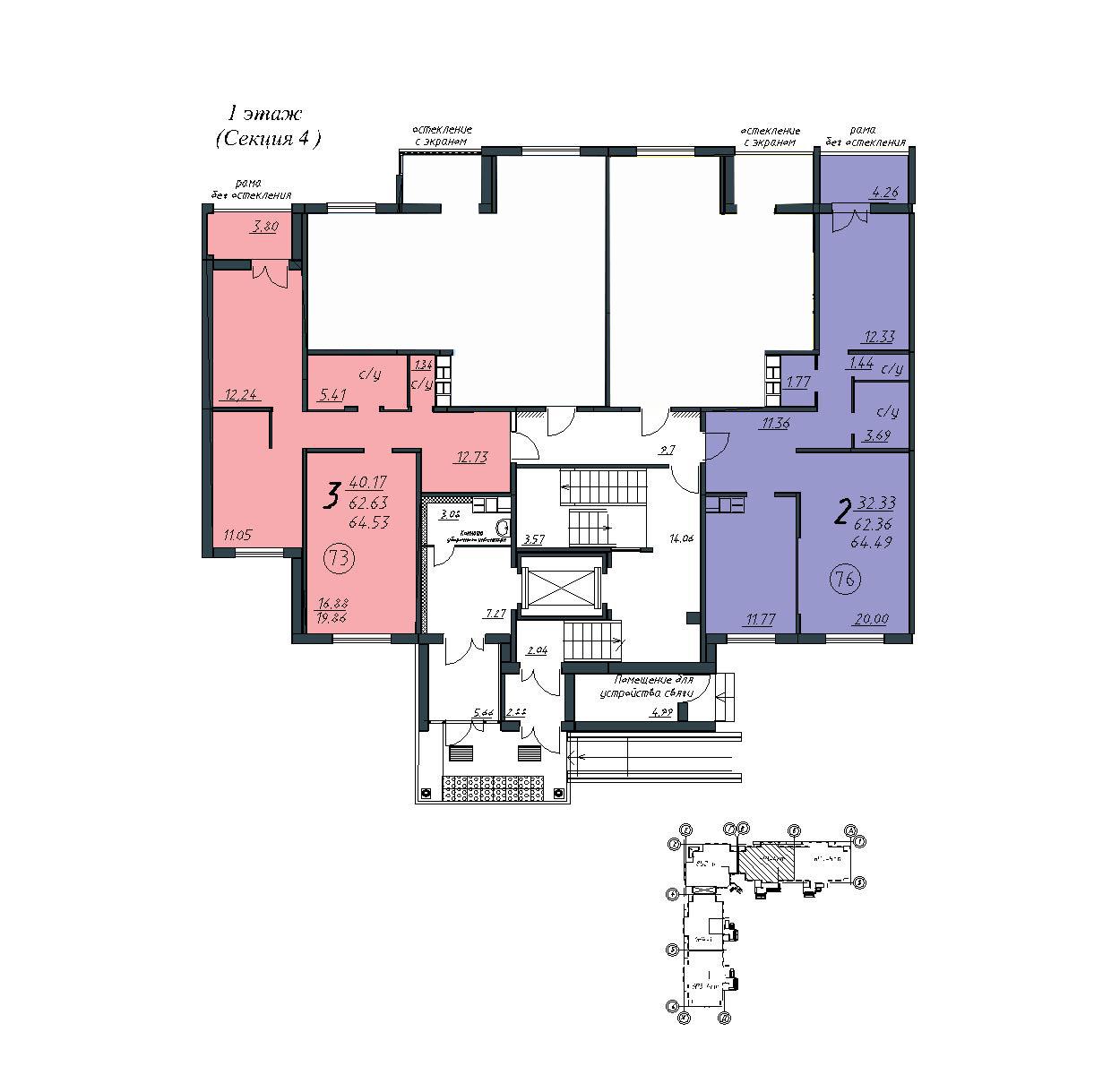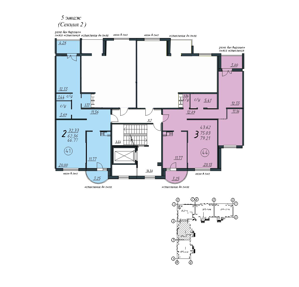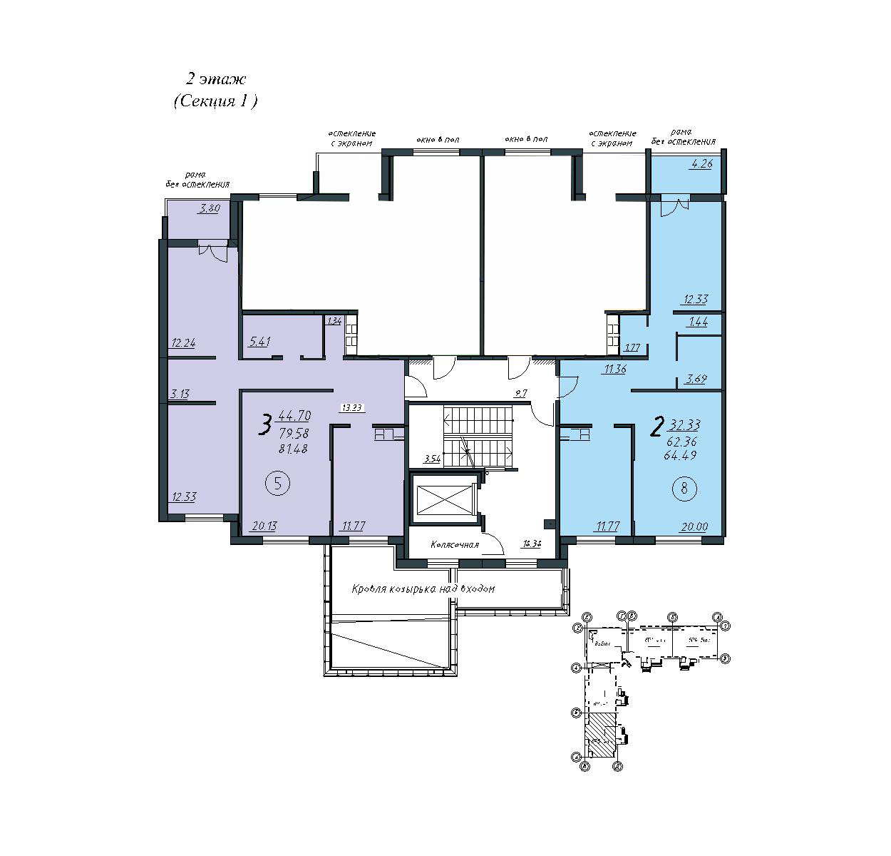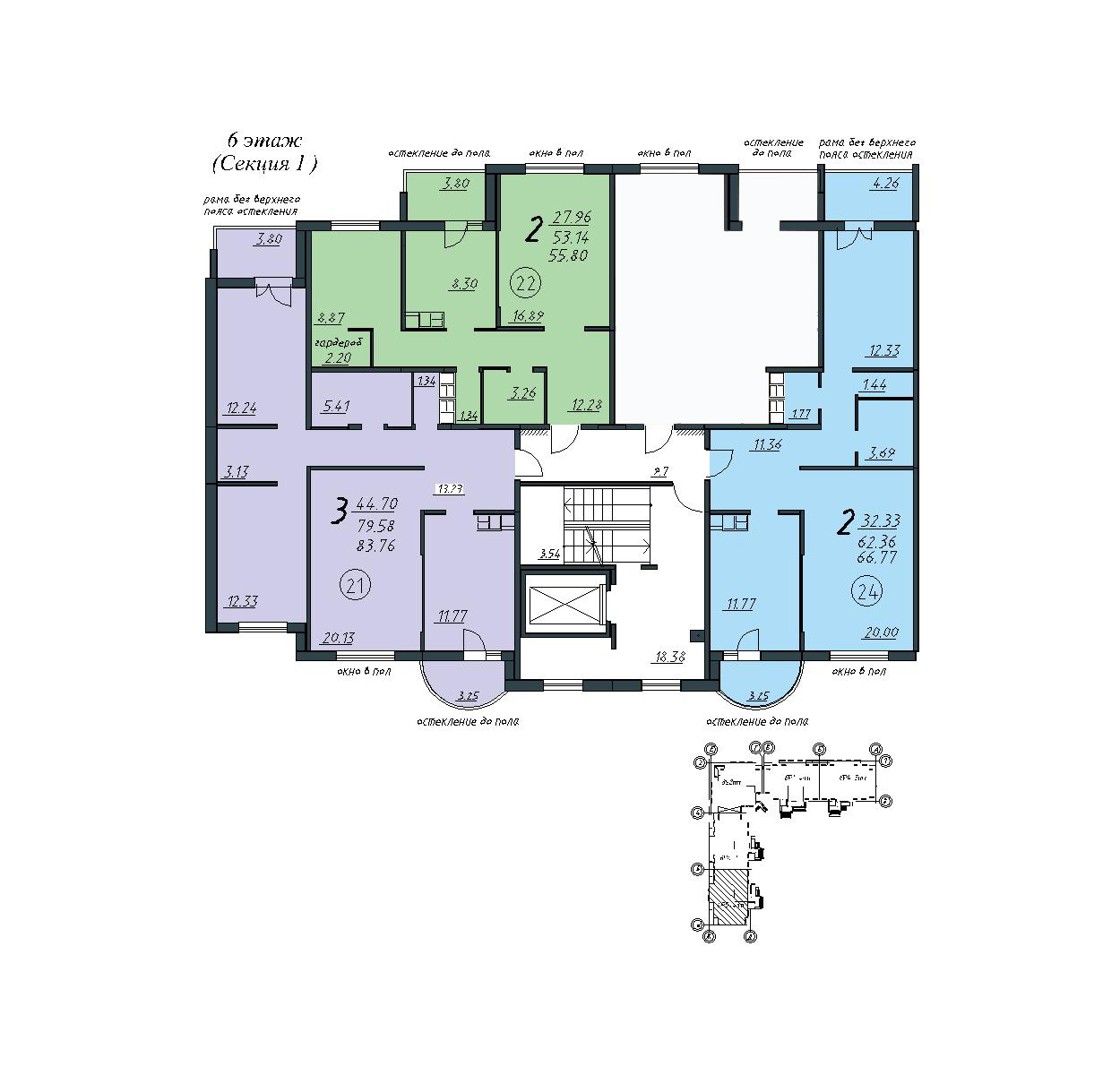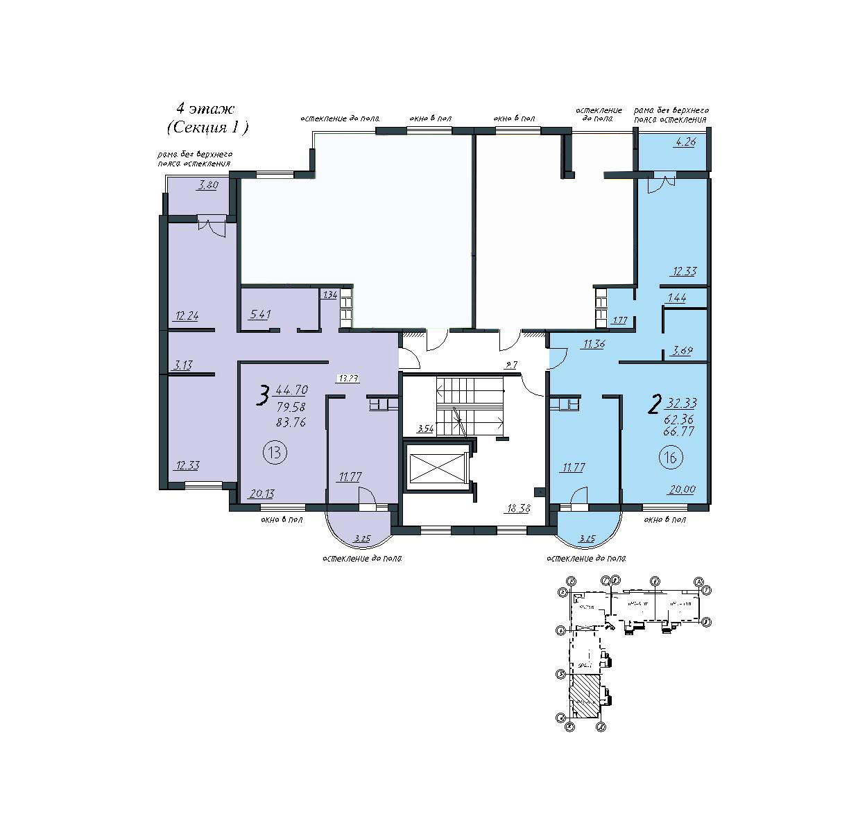1-но (43,52 – 55,3 м2); 2- х (52,44-56,29) м2; 2-х (64,49-68,36) м2; 3-х (64,53-69,56) м2 комн. кв. |
