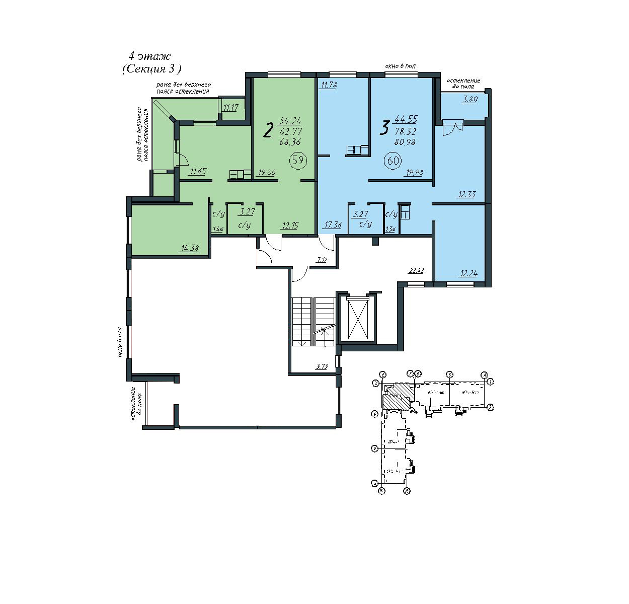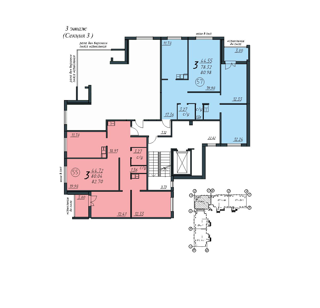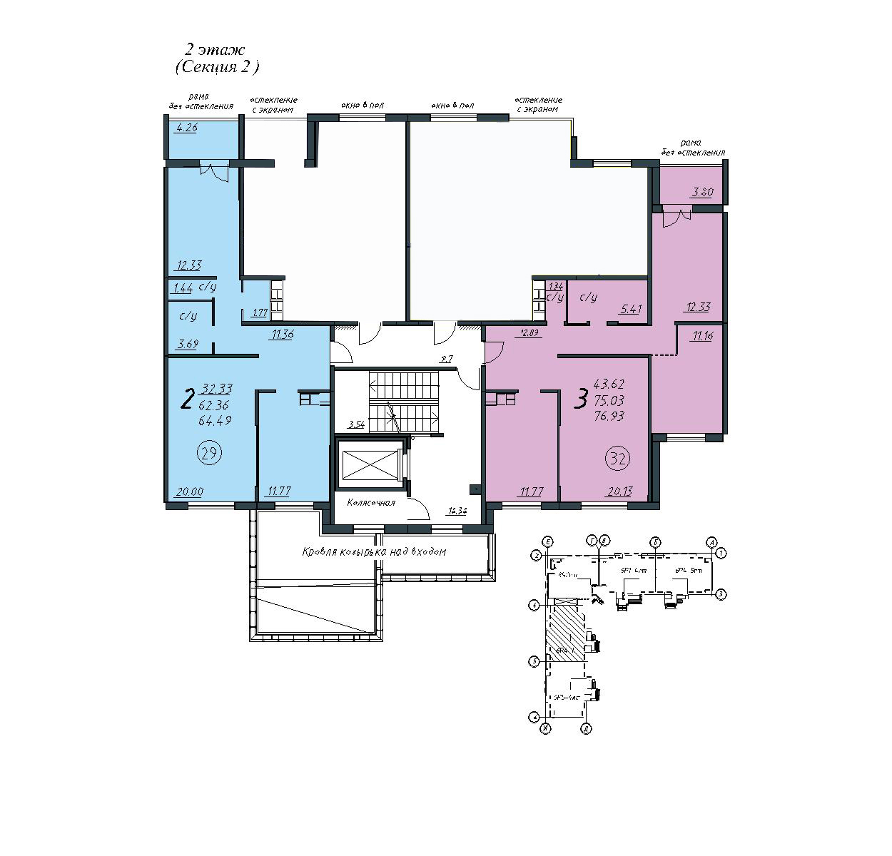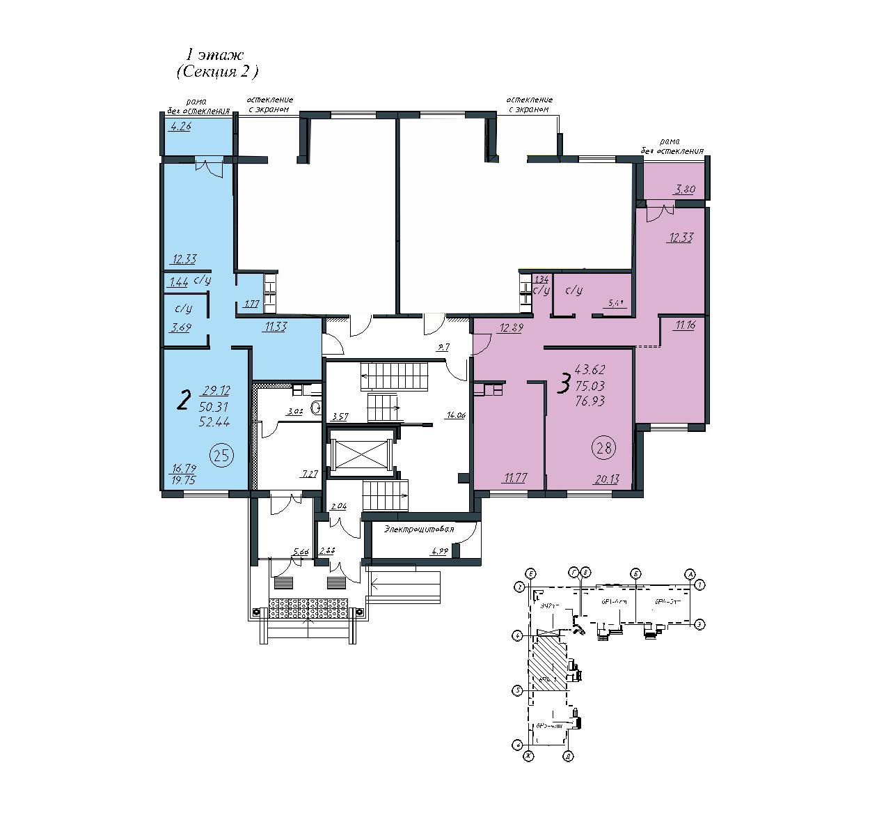 1-но (43,52 – 55,3 м2); 2- х (52,44-56,29) м2; 2-х (64,49-68,36) м2; 3-х (64,53-69,56) м2 комн. кв. |