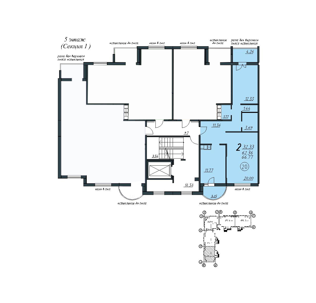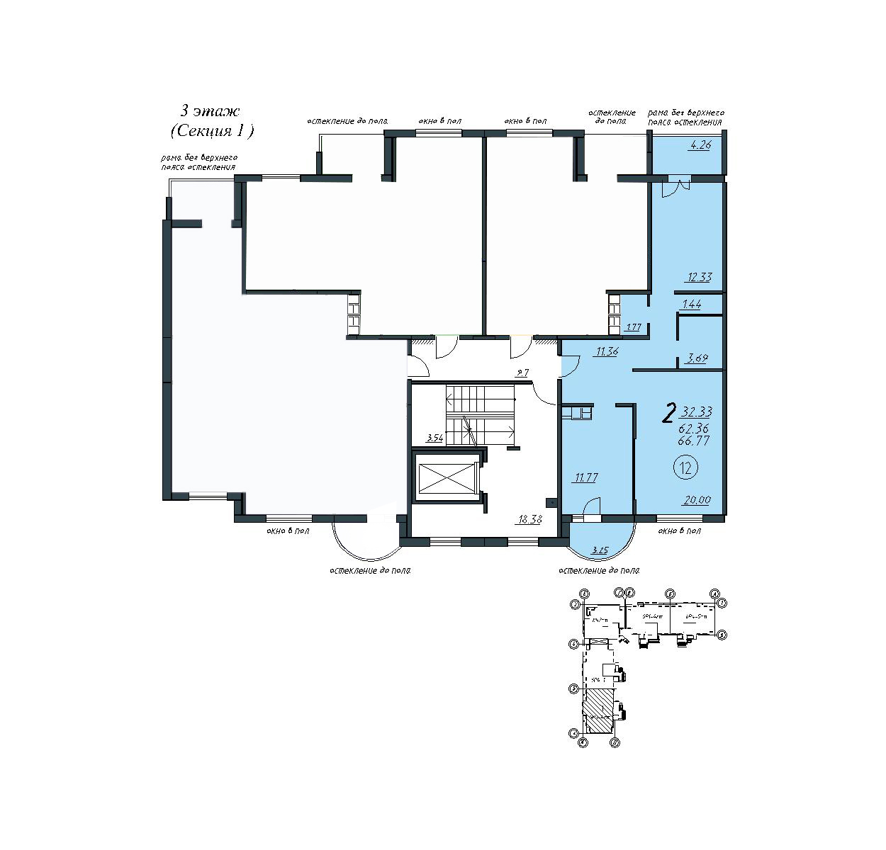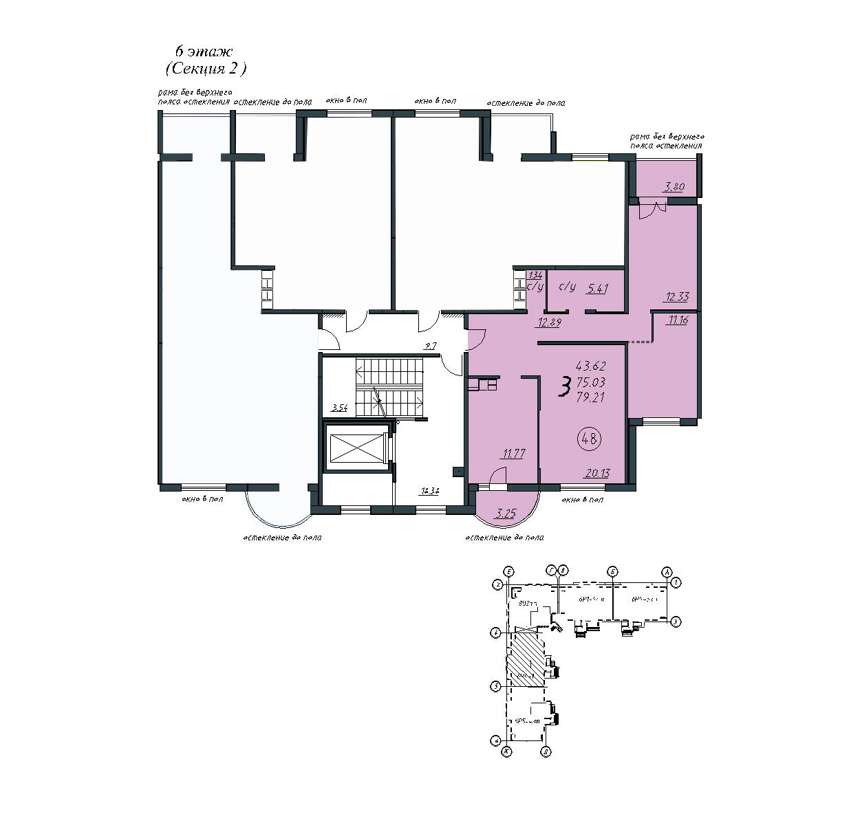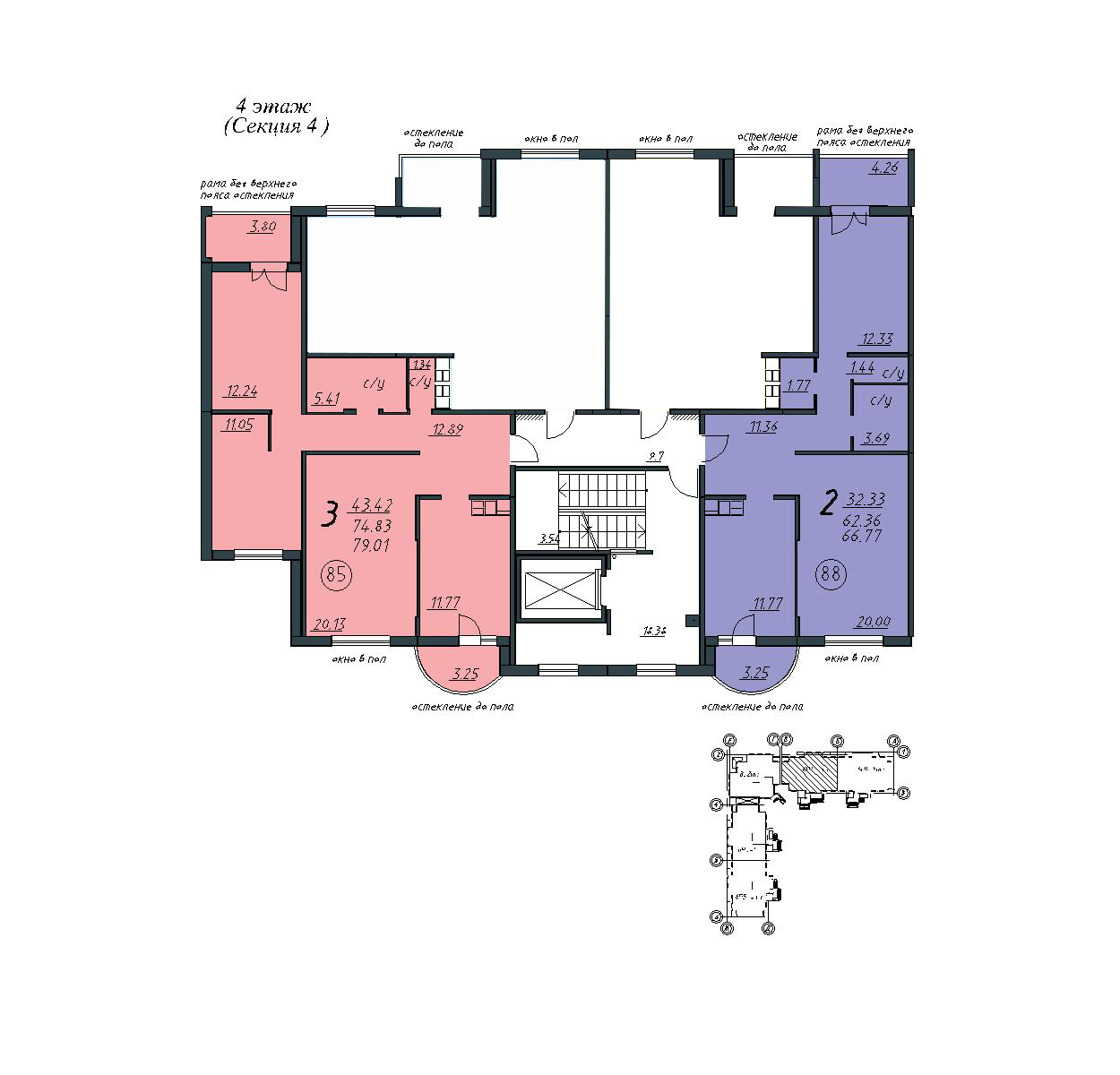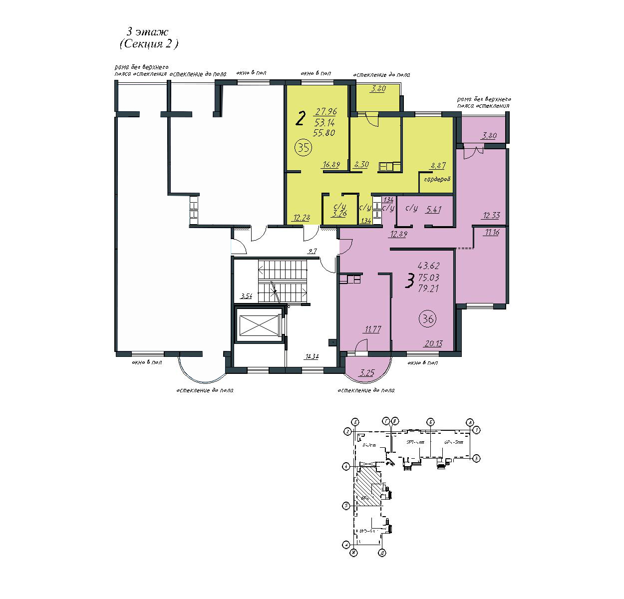 1-но (43,52 – 55,3 м2); 2- х (52,44-56,29) м2; 2-х (64,49-68,36) м2; 3-х (64,53-69,56) м2 комн. кв. |