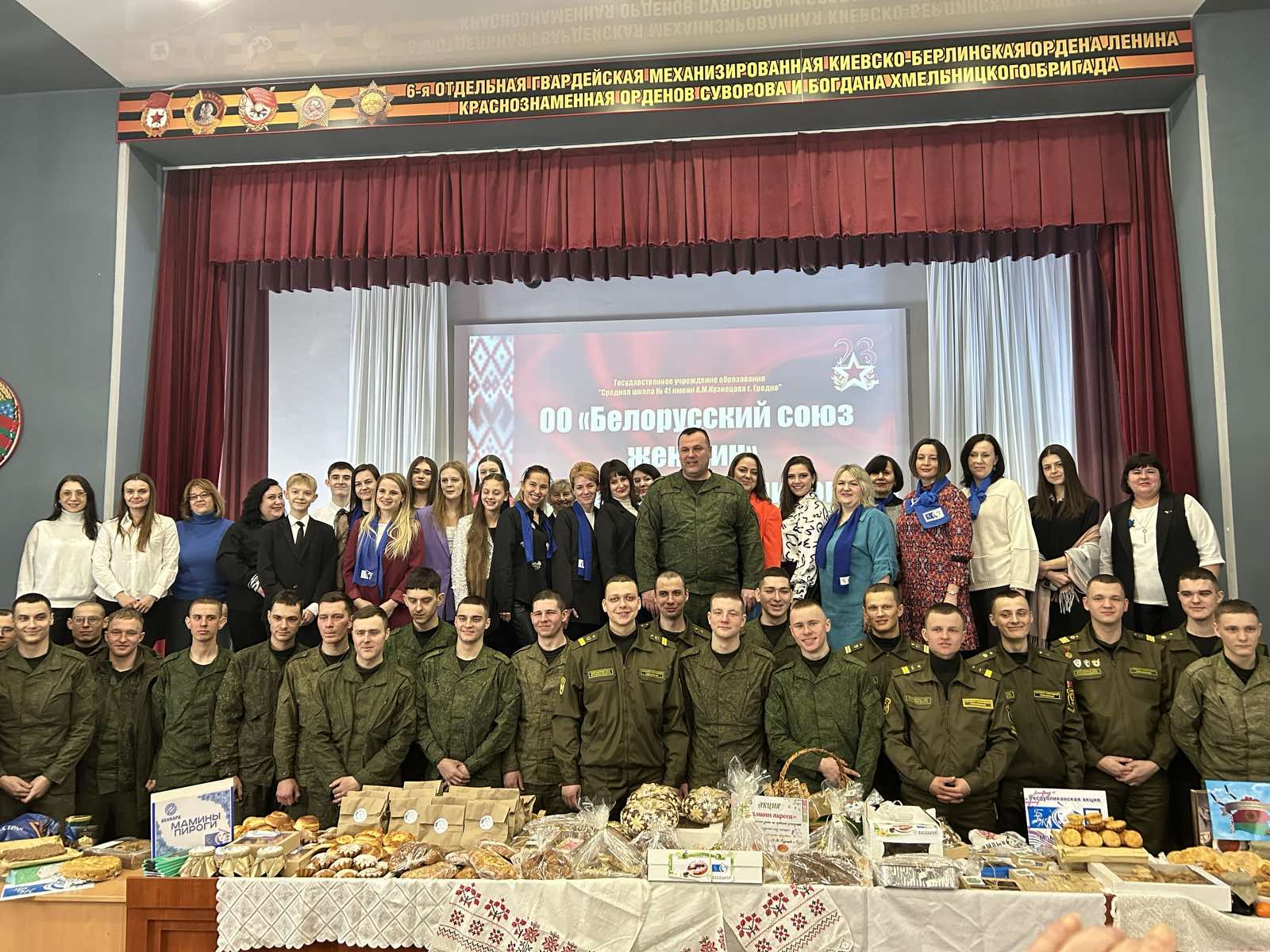 21 февраля в преддверии праздника Дня защитников Отечества активистки первички "Белорусского союза женщин" ОАО «Гродножилстрой» поздравили военнослужащих 6-ой отдельной гвардейской механизированной Киевско-Берлинской ордена Ленина, Краснознамённой, орденов Суворова и Богдана Хмельницкого бригады на Фолюше.