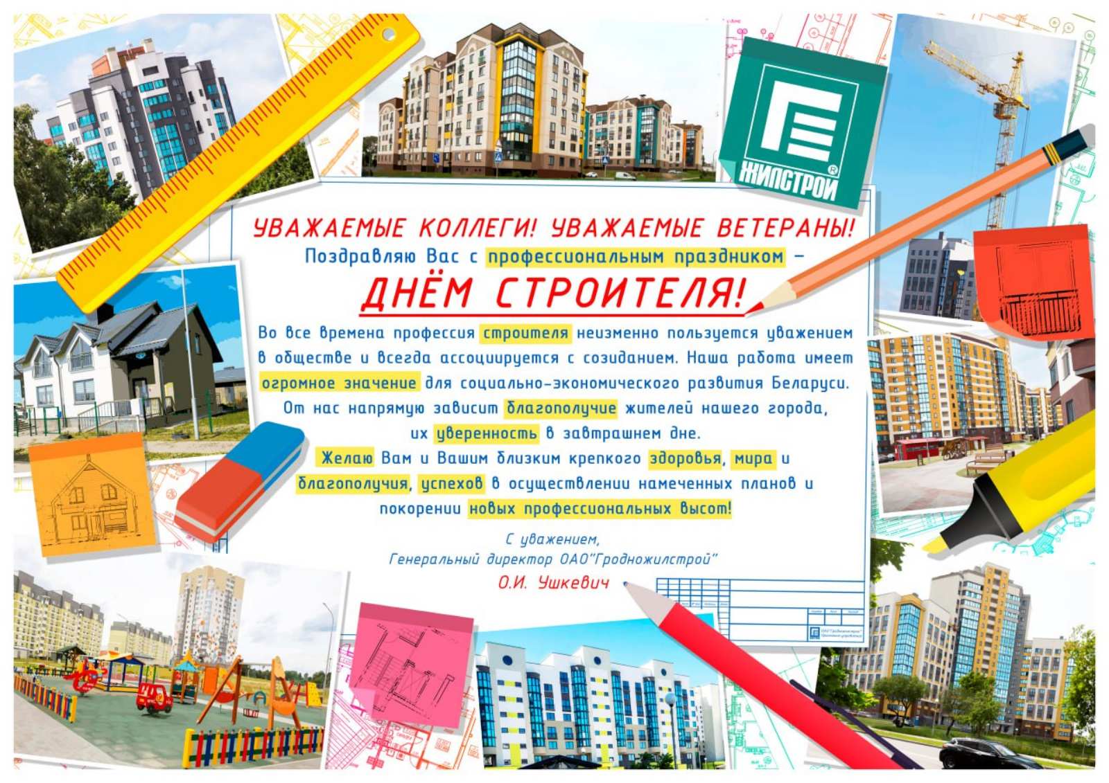 Поздравление генерального директора ОАО «Гродножилстрой» с ДНЁМ СТРОИТЕЛЯ!