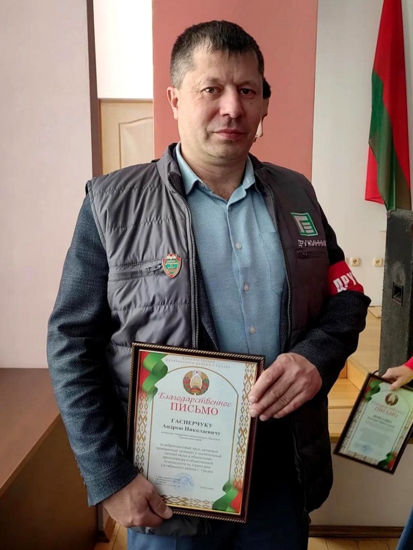 Поздравляем Гасперчука Андрея Николаевича с занесением на Доску почёта РУВД Октябрьского района г.Гродно как лучшего дружинника района.